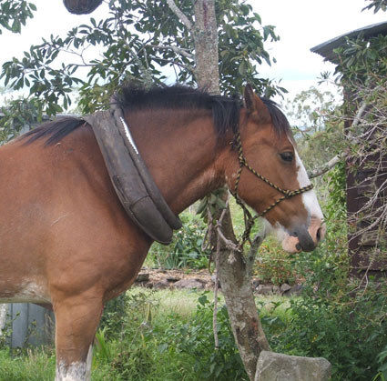 This 24" collar is oversized by quite a bit, as seen below-and just look at the throat of the collar sititng way below the mare's windpipe. |