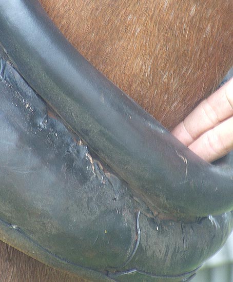 Any bigger a gap is potentially a problem with too much movement, and also too low a point of draught of the hame hooks. This picture shows what is ideal. The collar actually looks a tad low or long in the big picture but it sits correctly when in draught.
